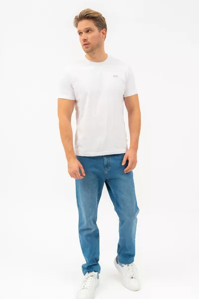 Regular fit férfi póló . Nyomott mintával díszített.