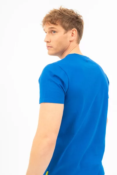 Modern fit férfi póló . Nyomott mintával díszített.