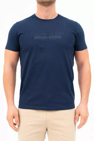 Modern fit férfi póló . Nyomott mintával díszített.