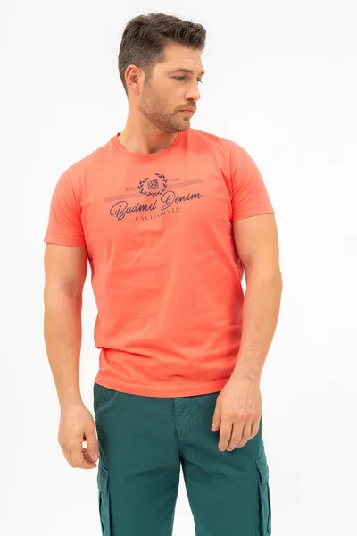 Modern fit férfi póló . Nyomott mintával díszített.