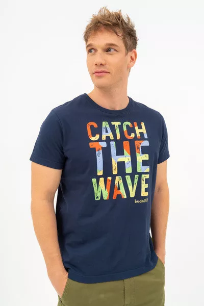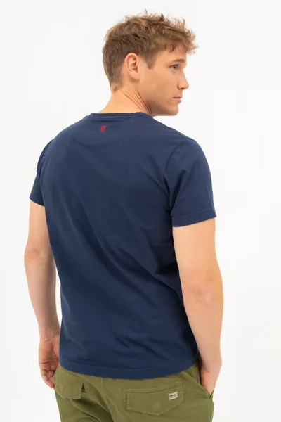 Modern fit férfi póló . Nyomott mintával díszített.