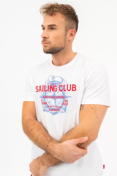 Regular fit férfi póló . Nyomott mintával díszített.