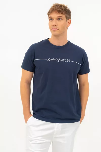 Regular fit férfi póló . Nyomott mintával díszített.