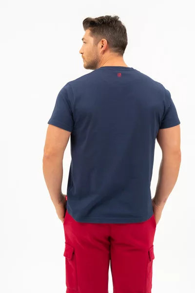 Regular fit férfi póló . Nyomott mintával díszített.