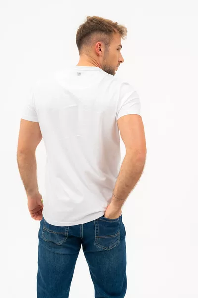 Modern fit férfi póló . Nyomott mintával díszített.