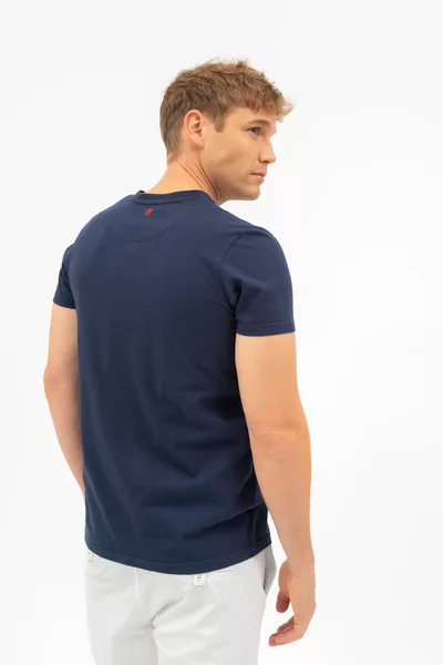 Modern fit férfi póló . Nyomott mintával díszített.