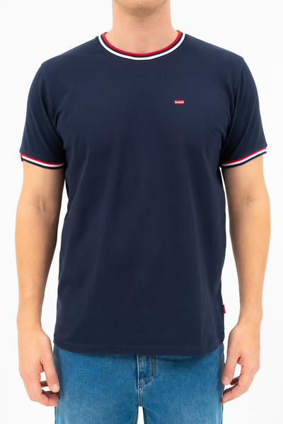 Modern fit férfi póló rugalmas piké anyagból. Nyomott mintával és szövött címkével díszített.