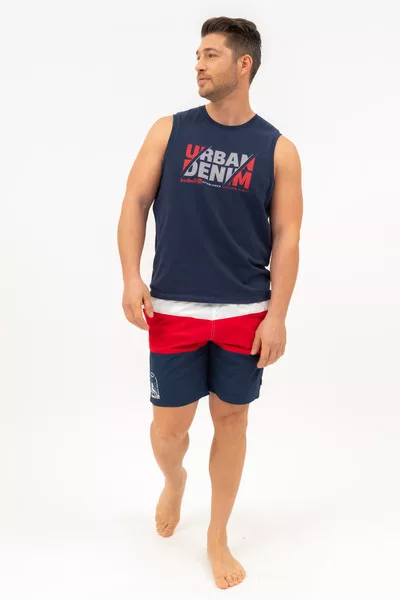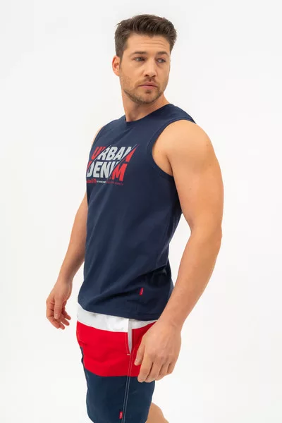 Regular fit férfi ujjatlan póló. Nyomott mintával díszített.