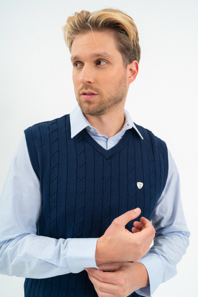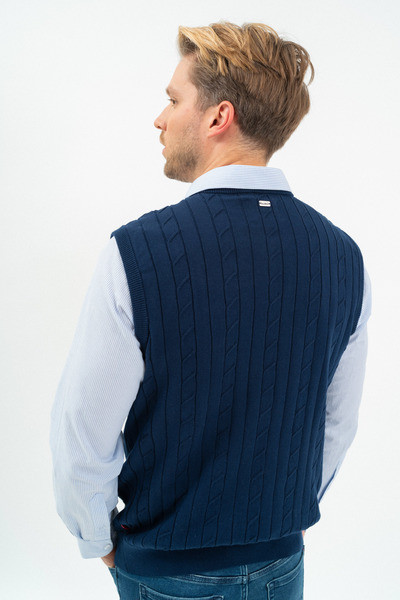 Férfi vékony kötött mellény. Fémcímkével díszítve.
