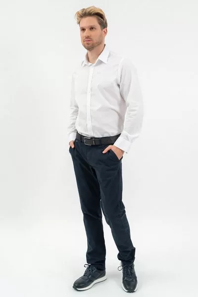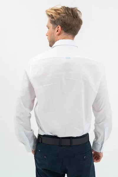 modern fit hosszú ujjú férfi ing - enyhén szűkített fazon - hímzéssel és szövött címkével díszítve