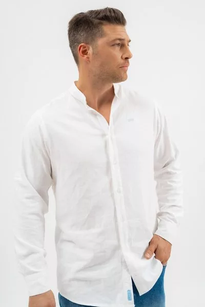 modern fit hosszú ujjú férfi ing enyhén szűkített fazon - ujja felgombolható - állógalléros - hímzésekkel díszítve<br> <br><p>