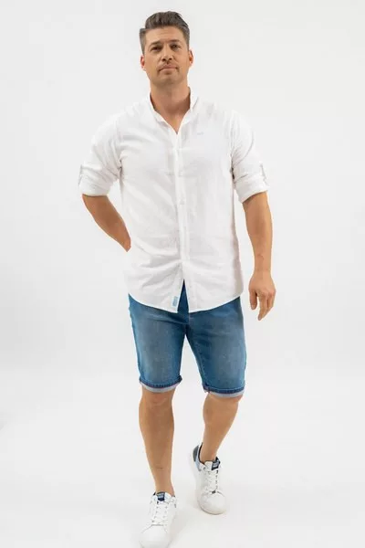 modern fit hosszú ujjú férfi ing enyhén szűkített fazon - ujja felgombolható - állógalléros - hímzésekkel díszítve<br> <br><p>