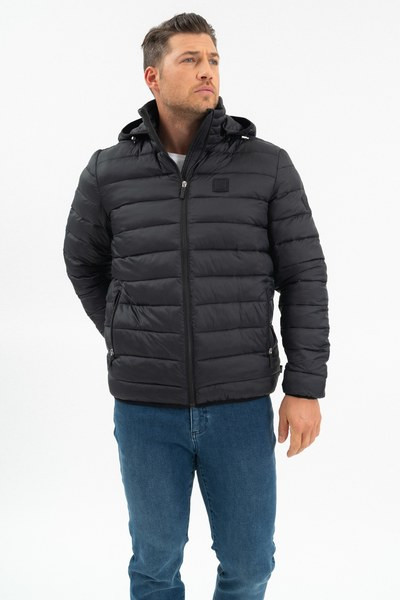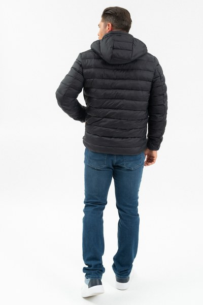 férfi steppelt vékony dzseki - kapucni lecipzározható - belső zsebek - gumicímkékkel díszítve