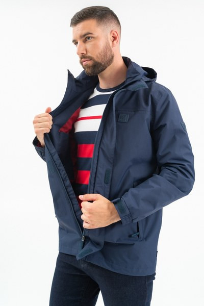 férfi széldzseki vízlepergető anyagból - lecipzározható kapucnival - ujja alja tépőzárral állítható - gumicímkével díszítve