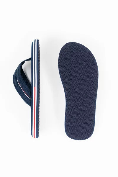 Férfi lábujjközi papucs .Textil felsőrésszel.Gumicímkével díszítve.