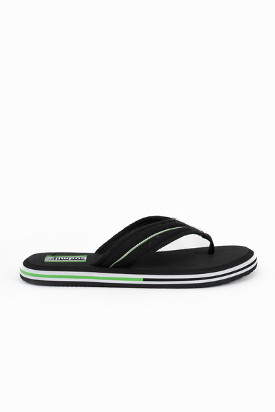 Férfi lábujjközi papucs .Textil felsőrésszel.Gumicímkével díszítve.