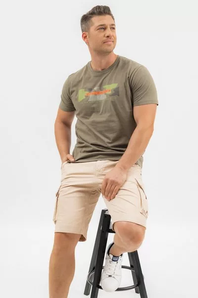 férfi póló regular fit - nyomott mintával díszített<br> <br><p>Ez a <strong>férfi póló</strong> <strong>regular fit szabású</strong>, amely kényelmes, laza viseletet biztosít a mindennapokra. A pólót stílusos <strong>nyomott minták</strong> díszítik.</p>