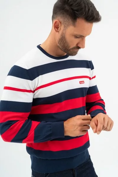 Budmil kötött pulóver - 20050832-001 férfi pulóver.s.kék-piros színű Budmil férfi pulóver.