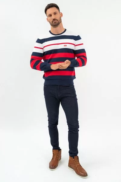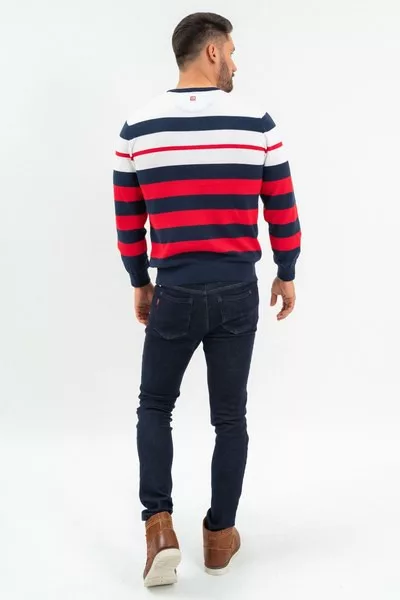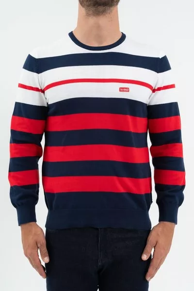 Budmil kötött pulóver - 20050832-001 férfi pulóver.s.kék-piros színű Budmil férfi pulóver.