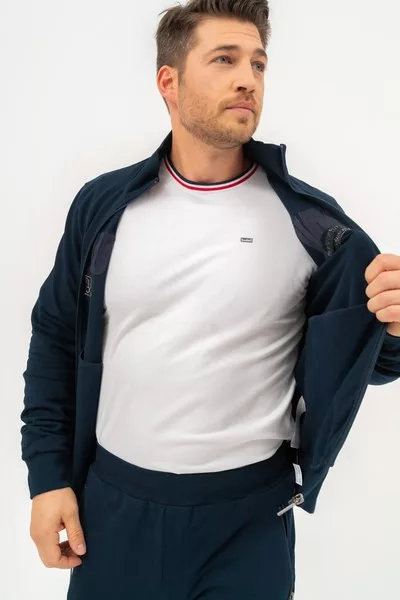 férfi szabadidőfelső rugalmas anyagból - alapanyaga belül bolyhozatlan - hímzett mintával díszítve