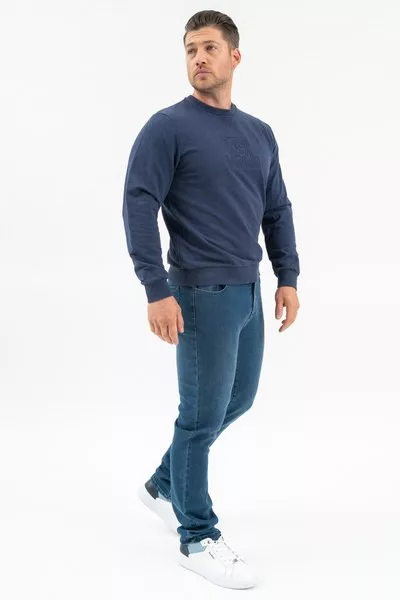 férfi szabadidőfelső rugalmas anyagból - alapanyaga belül bolyhozatlan - hímzett mintával díszítve