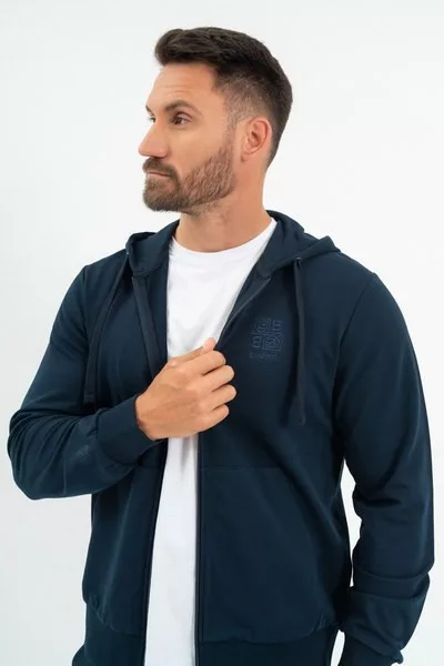 férfi kapucnis szabadidőfelső - rugalmas anyagból - alapanyaga belül bolyhozatlan - hímzett mintával díszítve