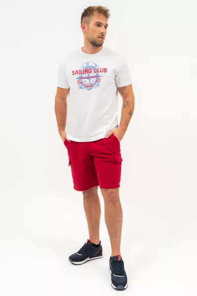 Férfi oldalzsebes short . Alapanyaga belül bolyhozatlan . Szövött címkével díszítve.