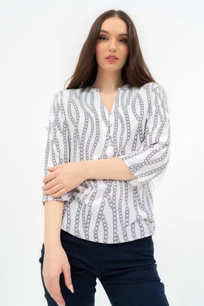 3/4-es ujjú női blúz . Ujja alja felgombolható . Karcsúsított fazon . Fémcímkével díszítve.