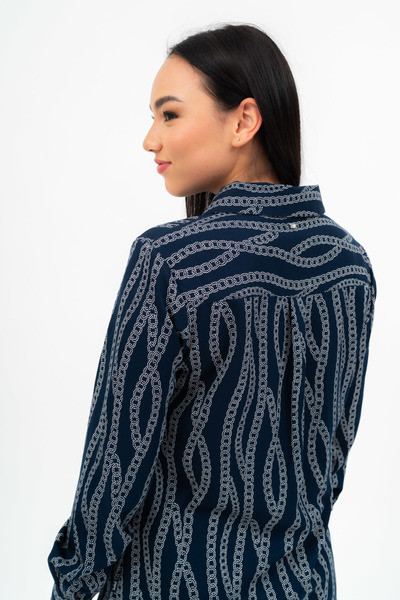 Hosszú ujjú női blúz . Karcsúsított fazon . Fémcímkével díszítve.