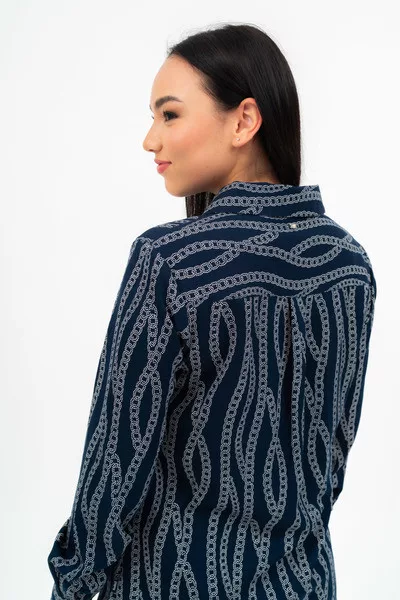 Hosszú ujjú női blúz . Karcsúsított fazon . Fémcímkével díszítve.