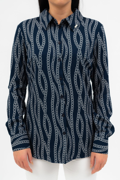 Hosszú ujjú női blúz . Karcsúsított fazon . Fémcímkével díszítve.