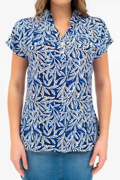 Rövid ujjú női blúz . Karcsúsított fazon . Fémcímkével díszítve.