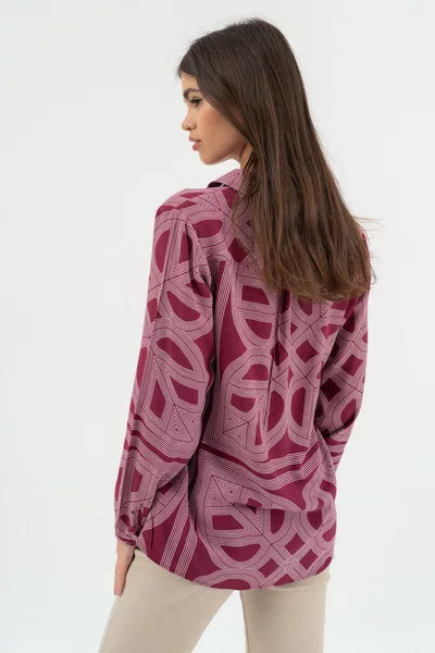 Női blúz . Lezser fazon . Fémcímkével díszítve. FIGYELEM! A nagyméretű nyomott minták egyedileg kerülnek rá minden termékre, így az elhelyezkedésük eltérő lehet a fotón látottól!.