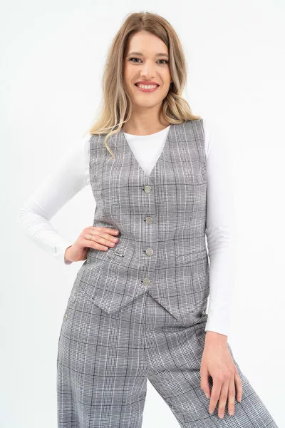 Női mellény. Karcsúsított fazon. Fémcímkével díszítve.