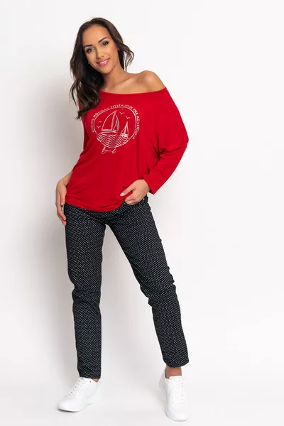 3/4-es ujjú női felső. Lezser fazon. Nyomott mintával díszített.