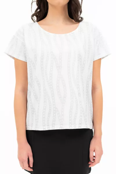 Női póló . Lezser fazon . Fémcímkével vagy hímzett mintával díszített.
