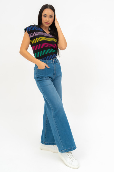 Női póló . Lezser fazon . Hátán keresztezett pántokkal. Nyomott mintával díszített.