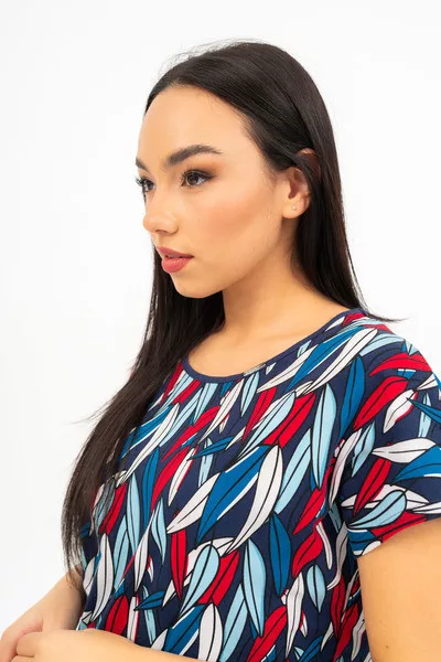 Női póló . Lezser fazon . Alján széles rugalmas pánt. Fémcímkével díszített.