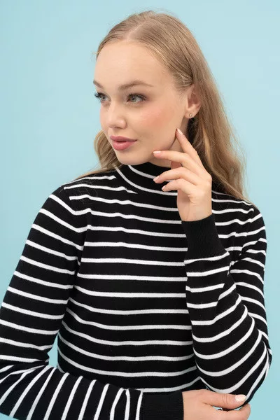 Női vékony kötött pulóver. Szűk fazon. Fémcímkével díszítve.