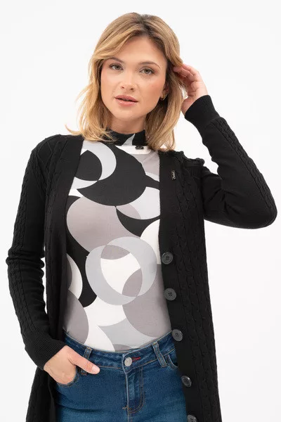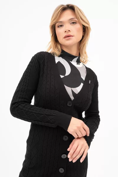 Női vékony kötött kardigán. Egyenes fazon. Fémcímkével díszítve.