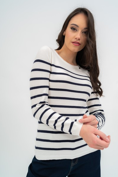 Budmil Kötött pulóver - B20050815-001 női Pulóver.fehér-s.kék színű Budmil női Pulóver.