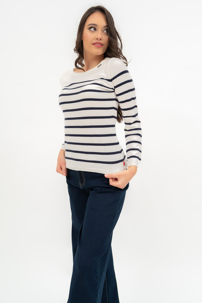 Budmil Kötött pulóver - B20050815-001 női Pulóver.fehér-s.kék színű Budmil női Pulóver.