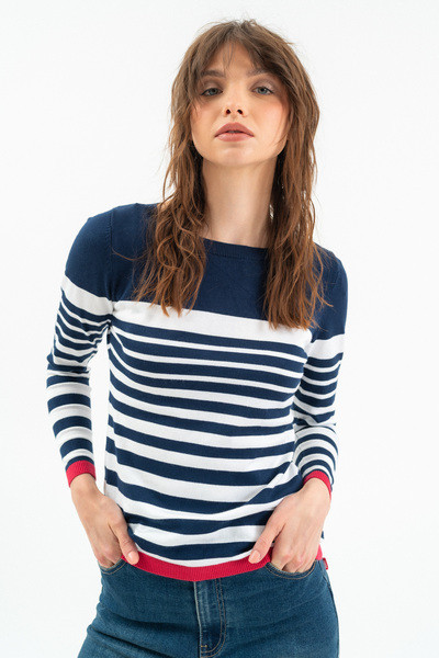 Budmil Kötött pulóver - B20050821-002 női Pulóver.s.kék-fehér színű Budmil női Pulóver.