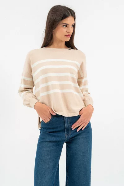 Budmil Kötött pulóver - B20050826-001 női Pulóver.bézs-fehér színű Budmil női Pulóver.