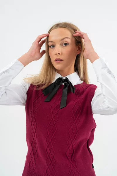 Budmil Kötött pulóver - B20050827-002 női Pulóver.bordó színű Budmil női Pulóver.