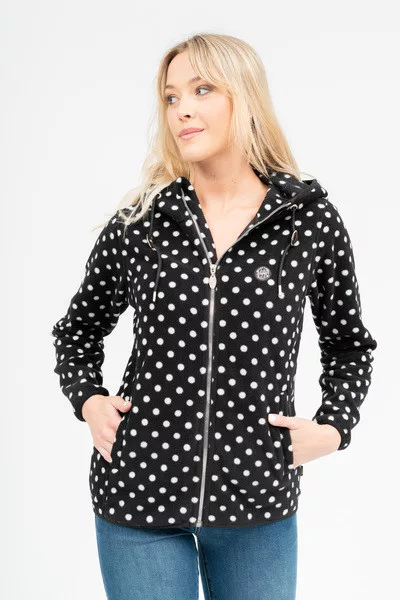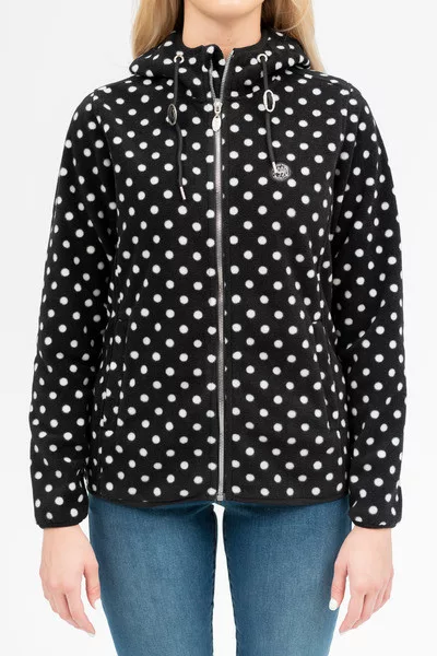 Női kapucnis polár felső. Szövött címkékkel díszítve.