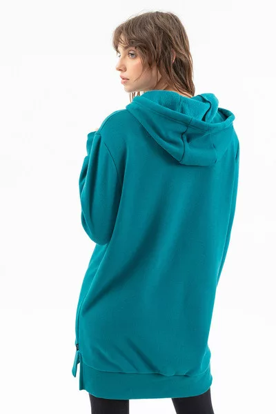 Női kapucnis ruha. Alapanyaga belül plüss. Lezser fazon. Strasszokkal díszítve.
