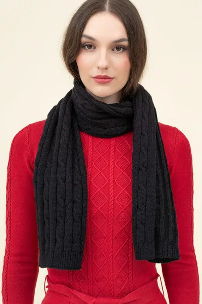 Női kötött sál. Műbőr címkével díszítve.