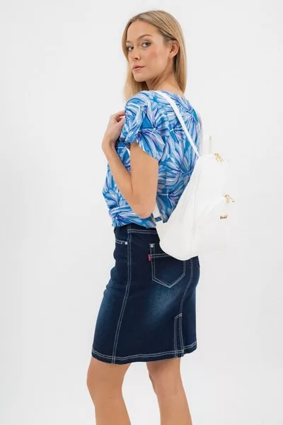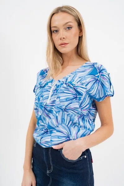 női rövid ujjú blúz lezser fazon - alján gumizott - fémcímkékkel díszítve<br> <br> <p>