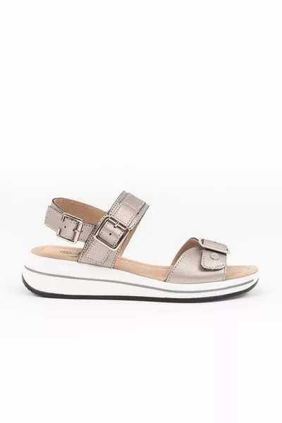 női szandál felsőrésze és bélése valódi bőr - fémcímkével és nyomott mintával díszítve<br> <br><p>